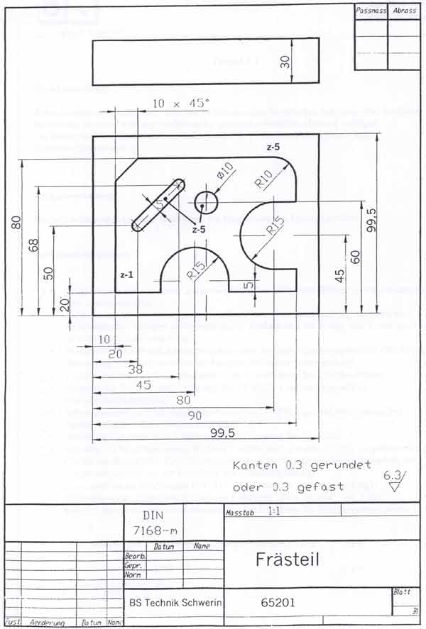 Anfertigung des Frästeiles FT 65201 an einer konventionellen